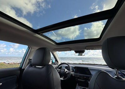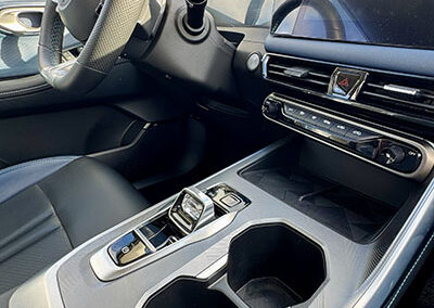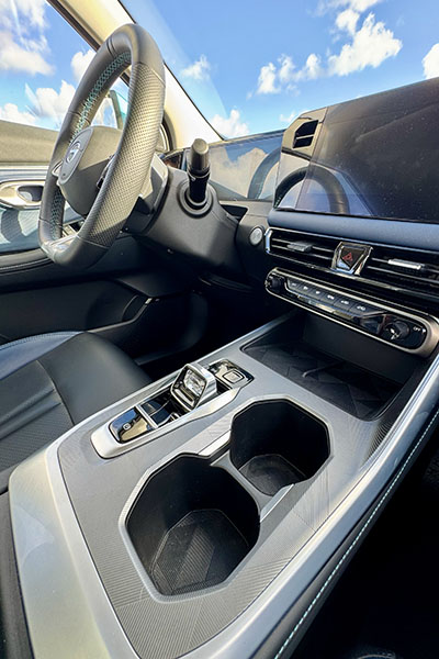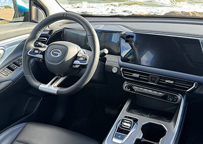 En cuanto al tablero, está compuesto por dos pantallas de muy buen tamaño que proveen mucha información (imposible de describir en este espacio). Dispone de conectividad inalámbrica Apple CarPlay y Android Auto, cámara de 360° y múltiples configuraciones del vehículo.